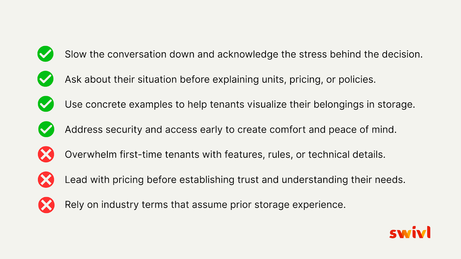 First-time storage tenants don’t respond well to information dumps.