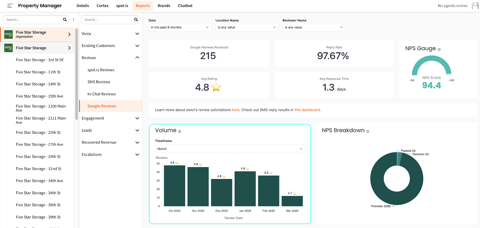 Choose from daily, weekly, monthly, or quarterly views to spot trends, track the impact of your Review Agent, or see how a specific campaign or operational change affected your reputation over time.