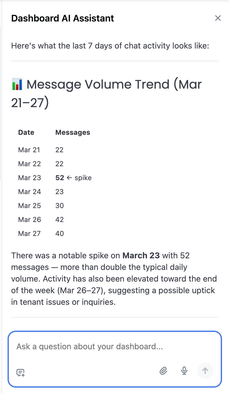 Why it matters: No more guessing when a conversation happened or how quickly your bot responded. Timestamps give your team the clarity to review interactions, coach on response times, and understand the full picture of every tenant touchpoint.