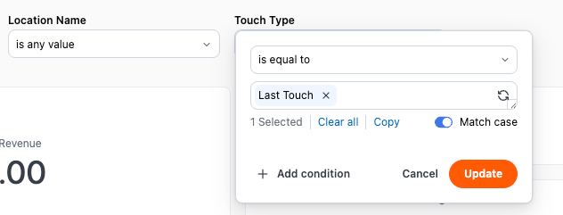 Touch Type filter (First Touch / Last Touch) - tenants often interact with multiple swivl channels before renting. Now you can choose how to view that journey. Switch to First Touch to see what started the conversation, or Last Touch to see what closed the deal. Remove the filter entirely to see all touchpoints across the journey.