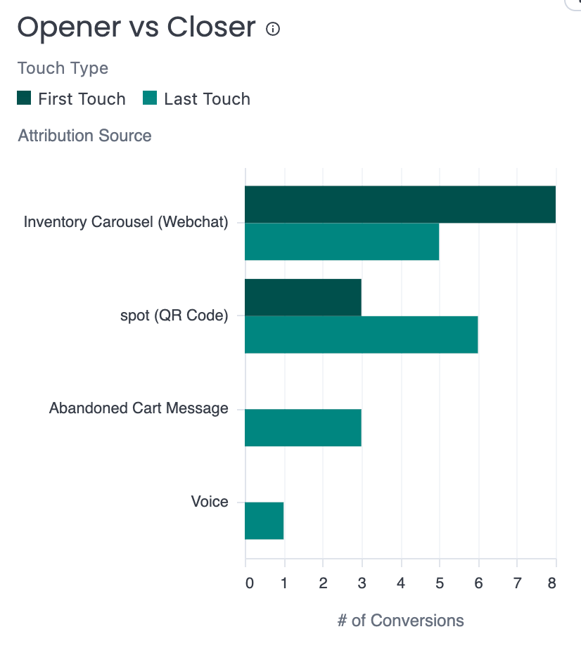 Opener vs. Closer chart - a side-by-side view of which channels are starting rental journeys versus which ones are finishing them. You might be surprised to see that the channel bringing people in isn't always the one getting them over the finish line.